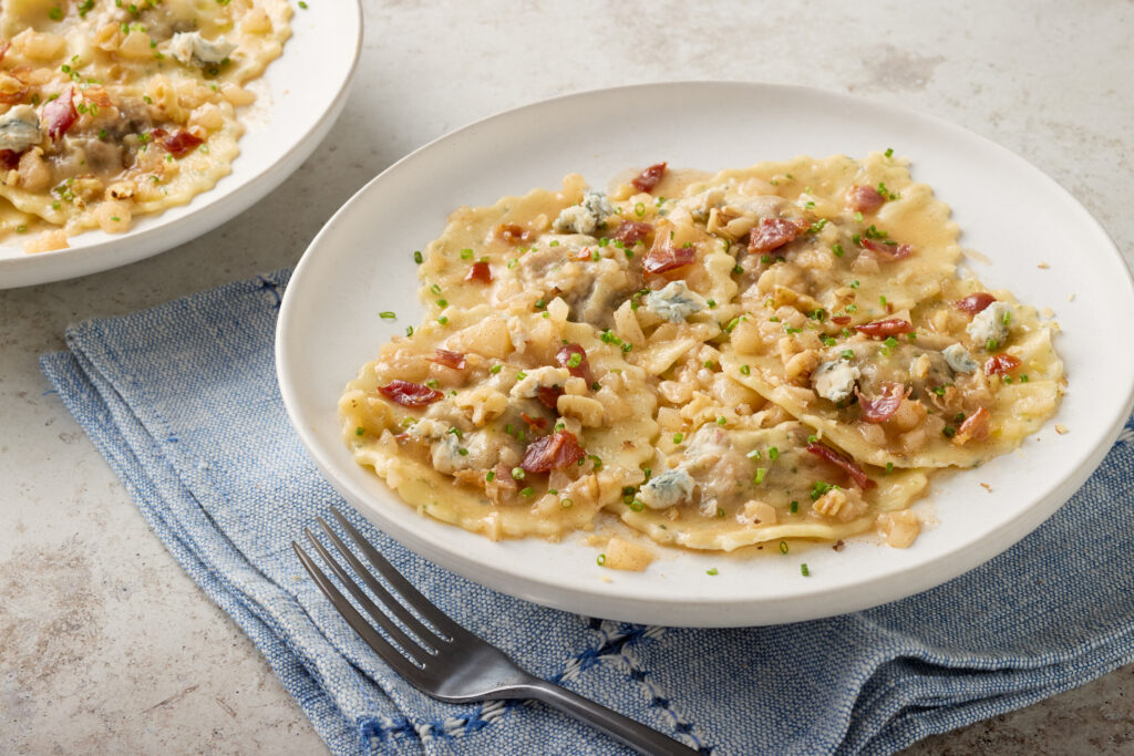 Pear Pancetta Fig Ravioli in Pear Butter Sauce